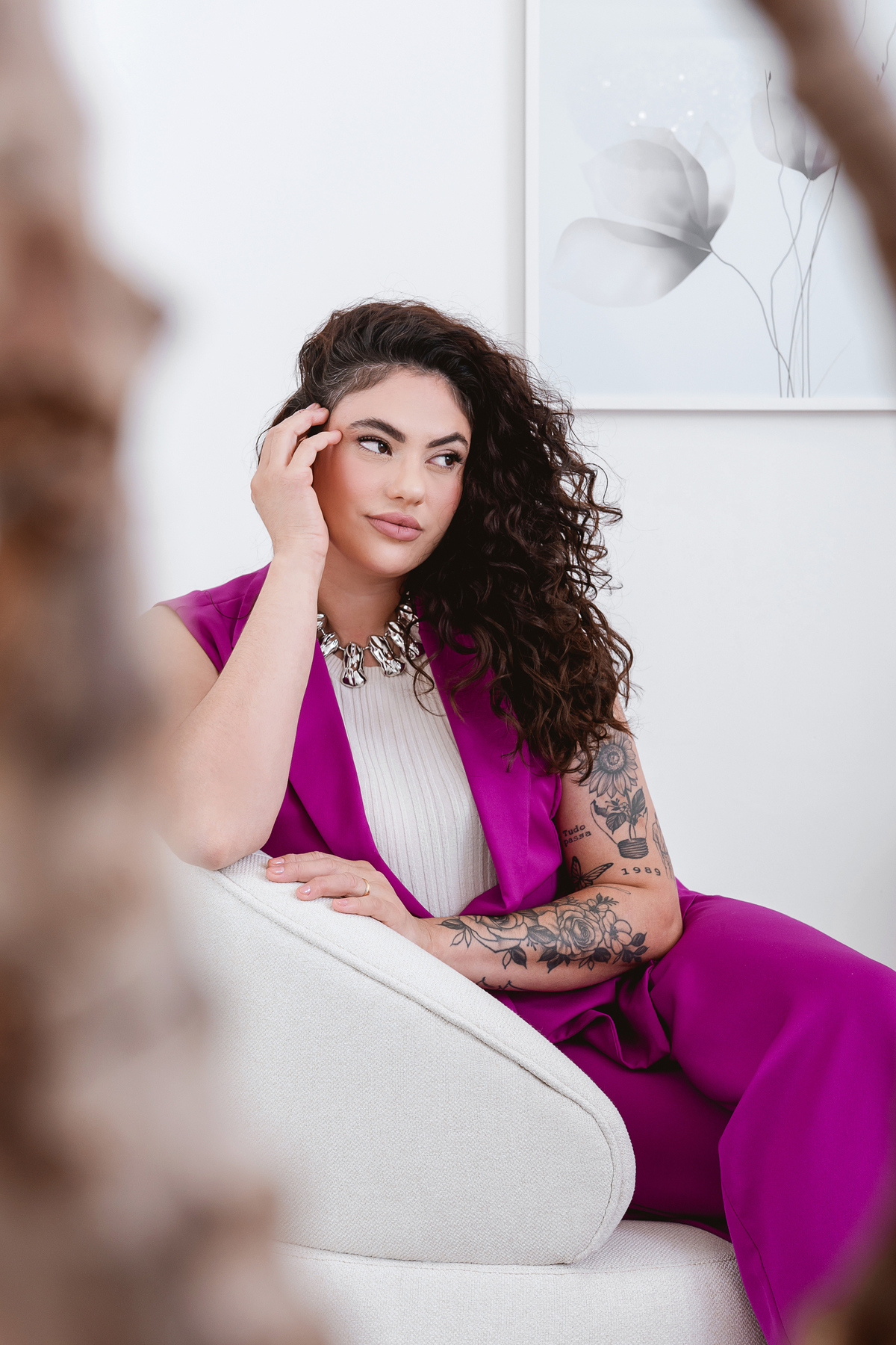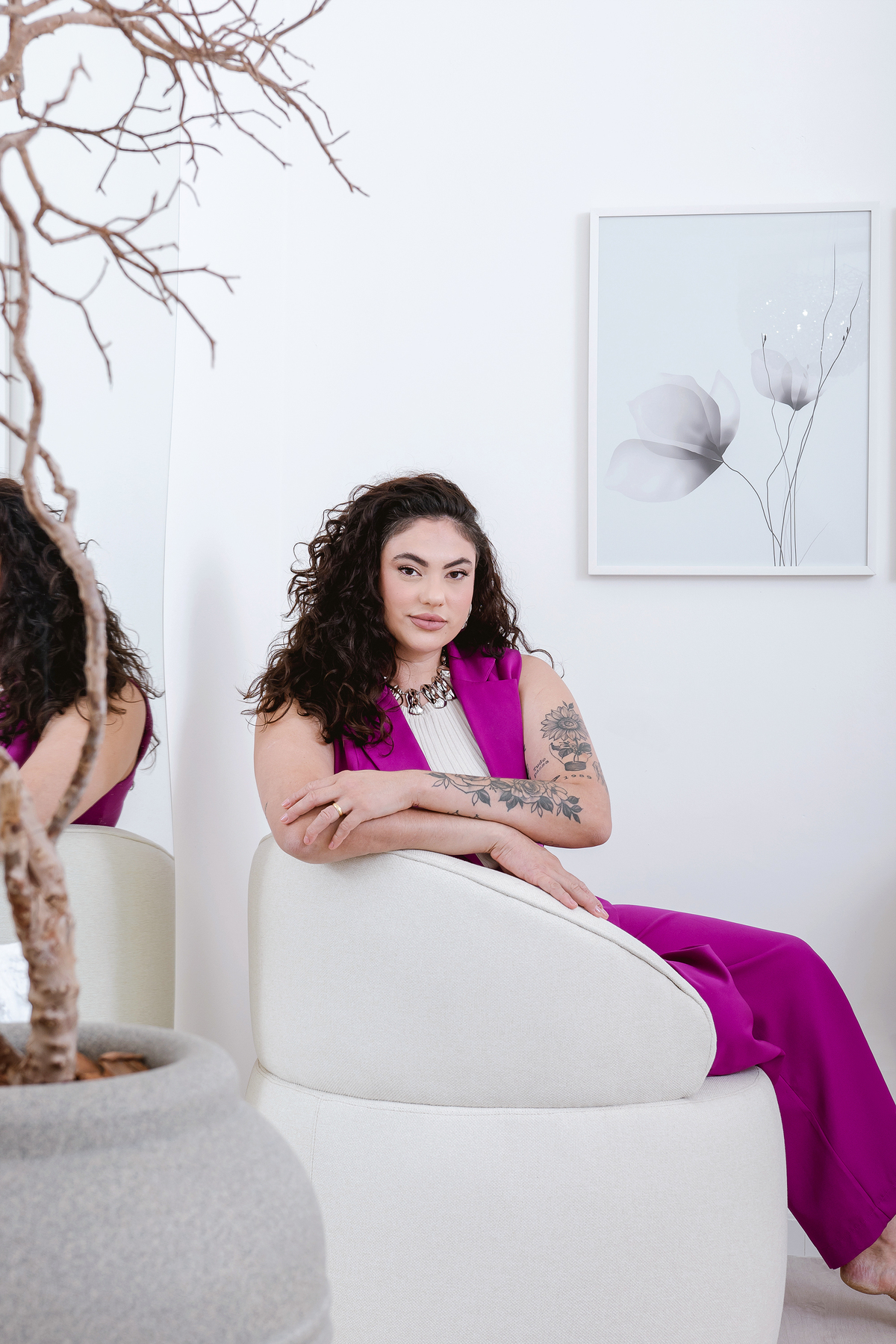 Cada cena foi pensada para destacar sua essência sofisticada e criativa. O resultado são retratos que refletem uma mulher que construiu autoridade sem perder a sensibilidade, que inspira sonhos enquanto os torna realidade com as próprias mãos.