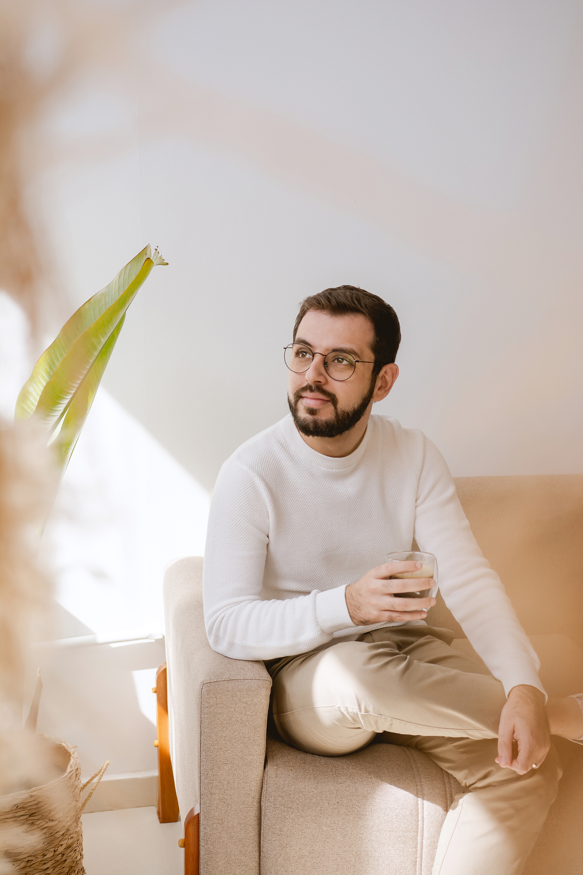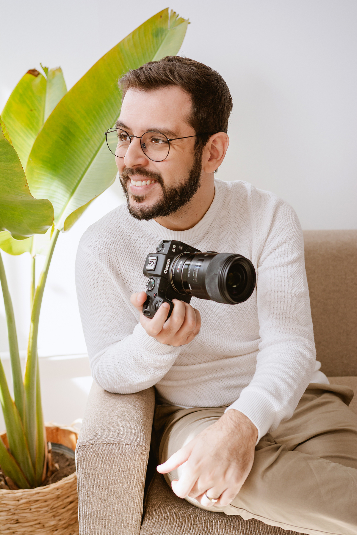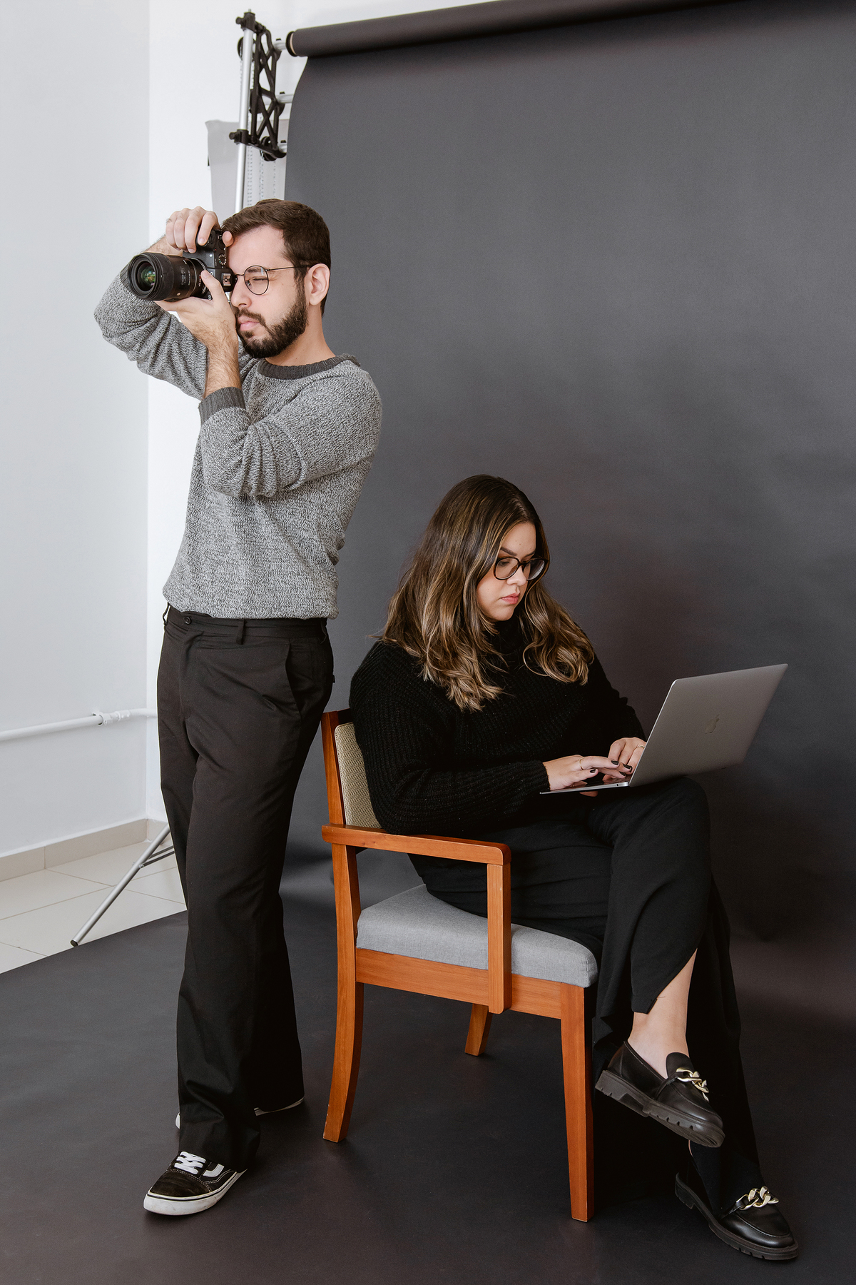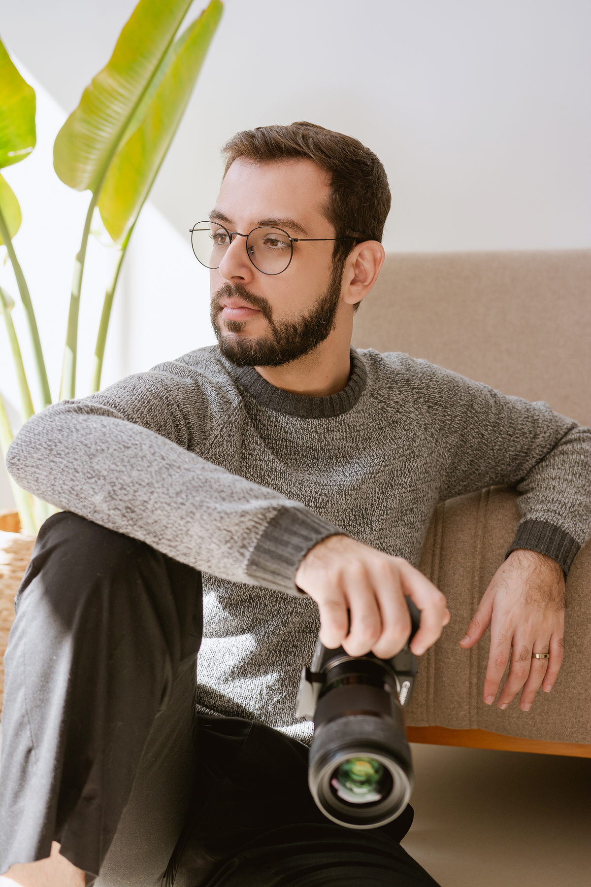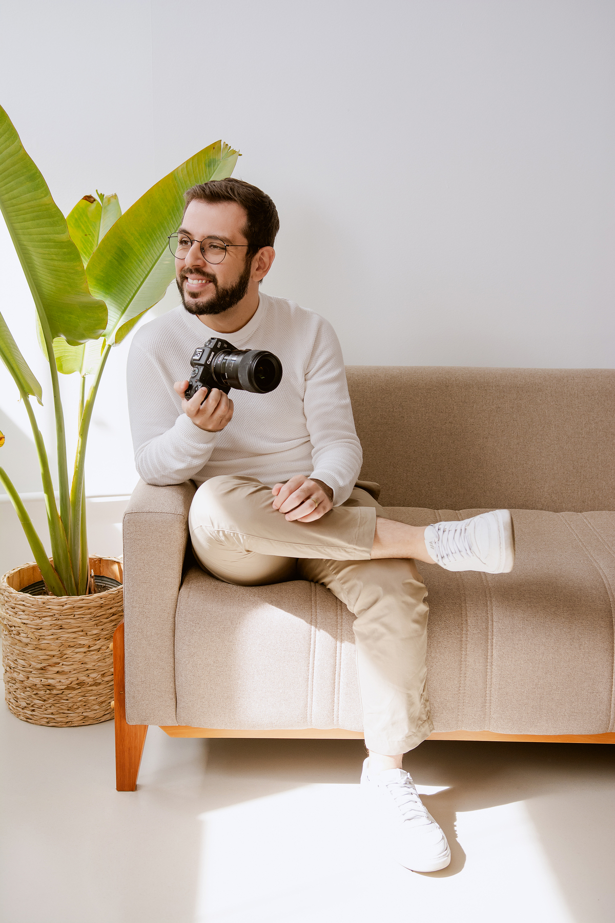 Para este ensaio WorkStyle, pensamos em uma estética que representasse exatamente isso: o universo afetivo, íntimo e sincero que o Gui constrói com sua fotografia. Escolhemos cores quentes, que traduzem o acolhimento, o toque humano e a emoção presentes em cada trabalho que ele entrega.
