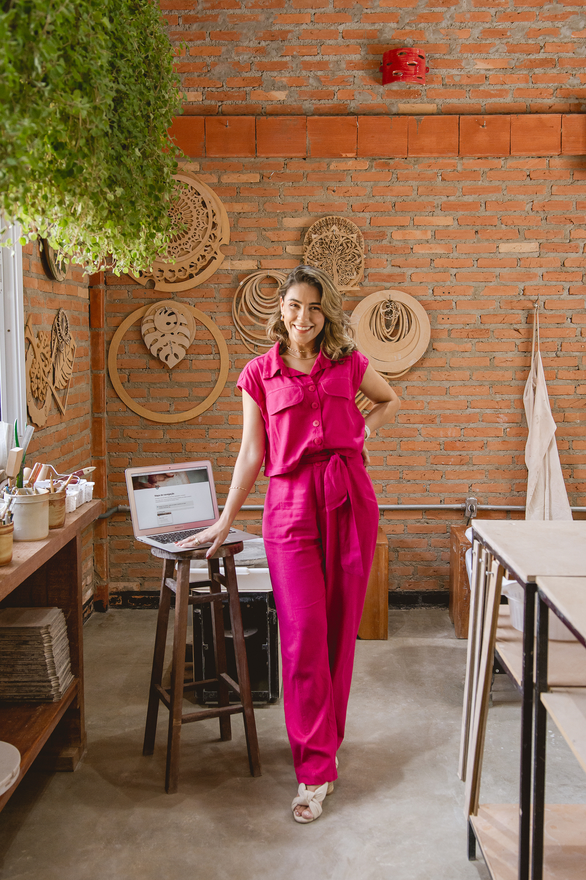Escolhemos como cenário um ateliê de cerâmica, um lugar cheio de simbolismo. Um espaço onde as mãos moldam, o tempo respeita o processo e cada peça carrega alma — exatamente como o trabalho que Carol desenvolve com seus pacientes e mentorandos. A estética foi pensada para refletir sua autenticidade: tons terrosos, formas orgânicas, luz suave e muita verdade.
